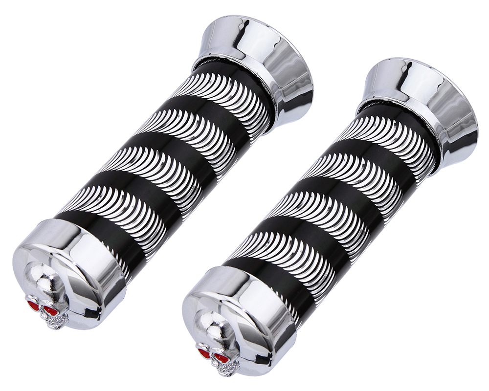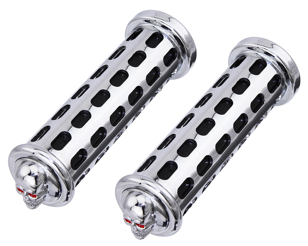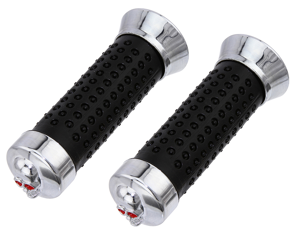 Grips 7/8 long 130mm BLock Black/Chrome 9808 Skull.