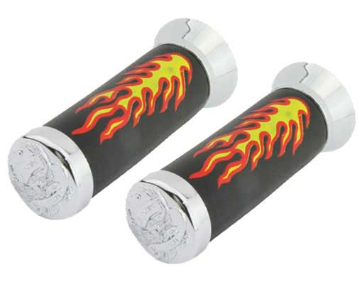 Grips 7/8 long 125mm W/Flames Black/Chrome Eagle.