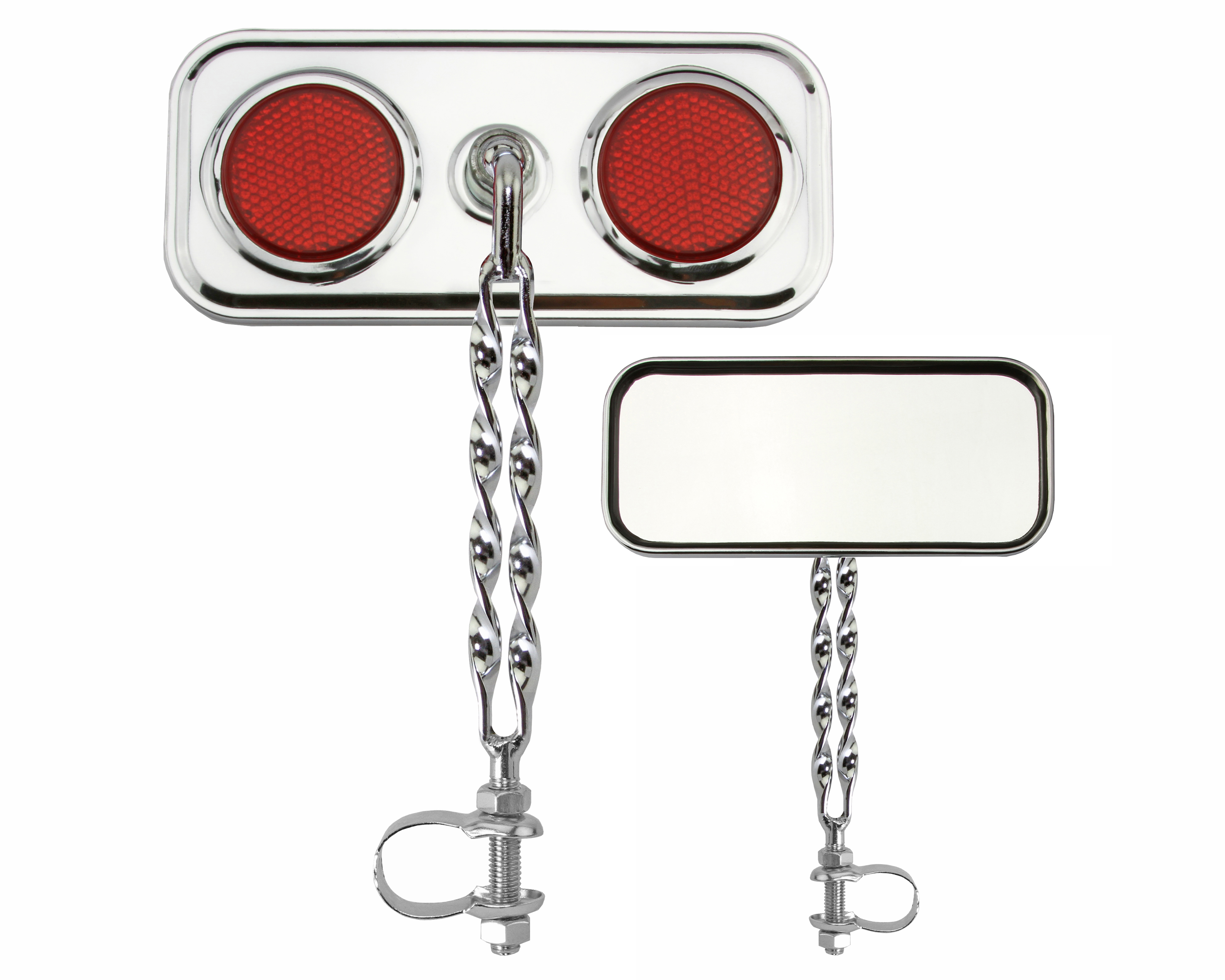 Rectangle Double Flat Twisted Mirror Chrome Red Reflectors.
