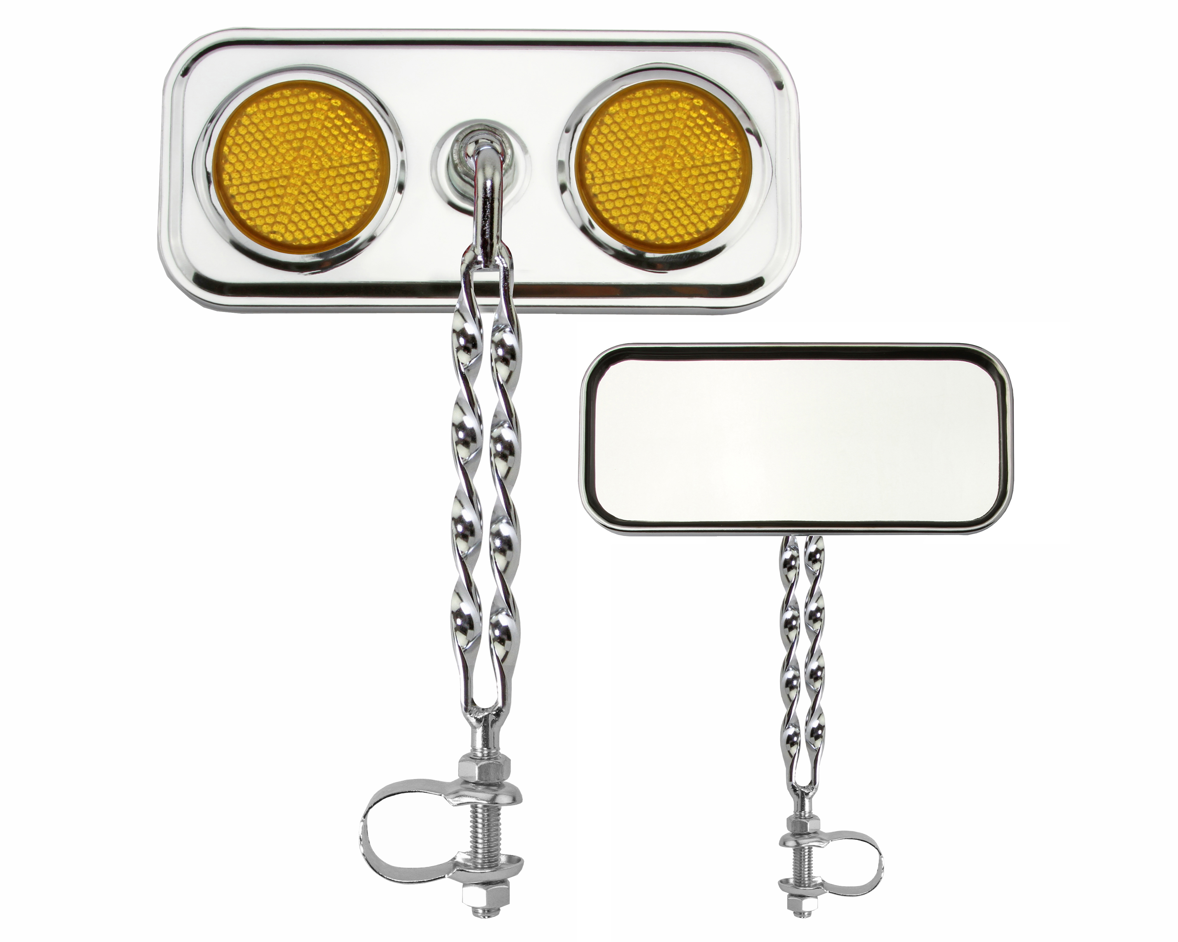 Rectangle Double Flat Twisted Mirror Chrome Amber Reflectors.