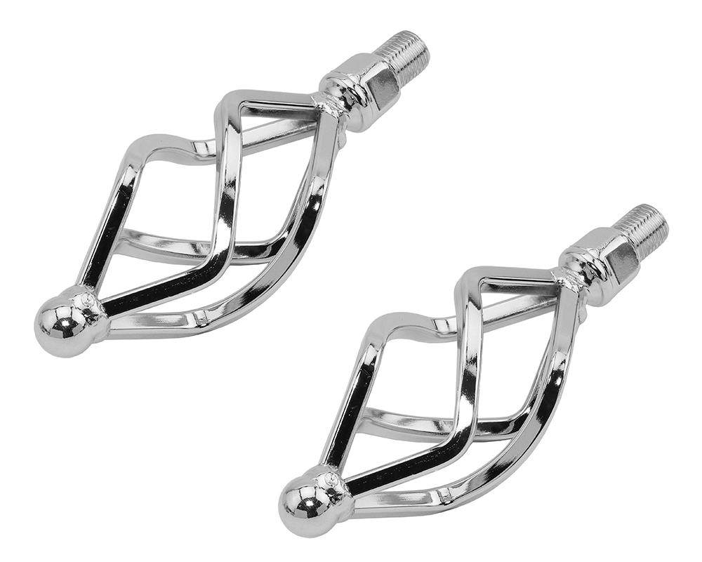 Lowrider Twisted Pedals W/Cage Oval O-580 1/2 Inch Chrome.