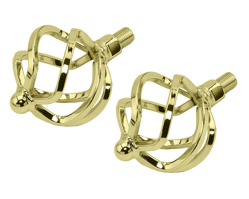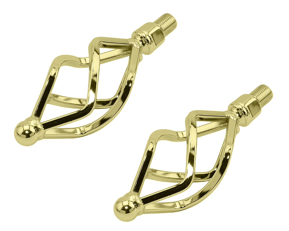 Lowrider Twisted Pedals W/Cage Oval O-580 1/2 Inch Gold.