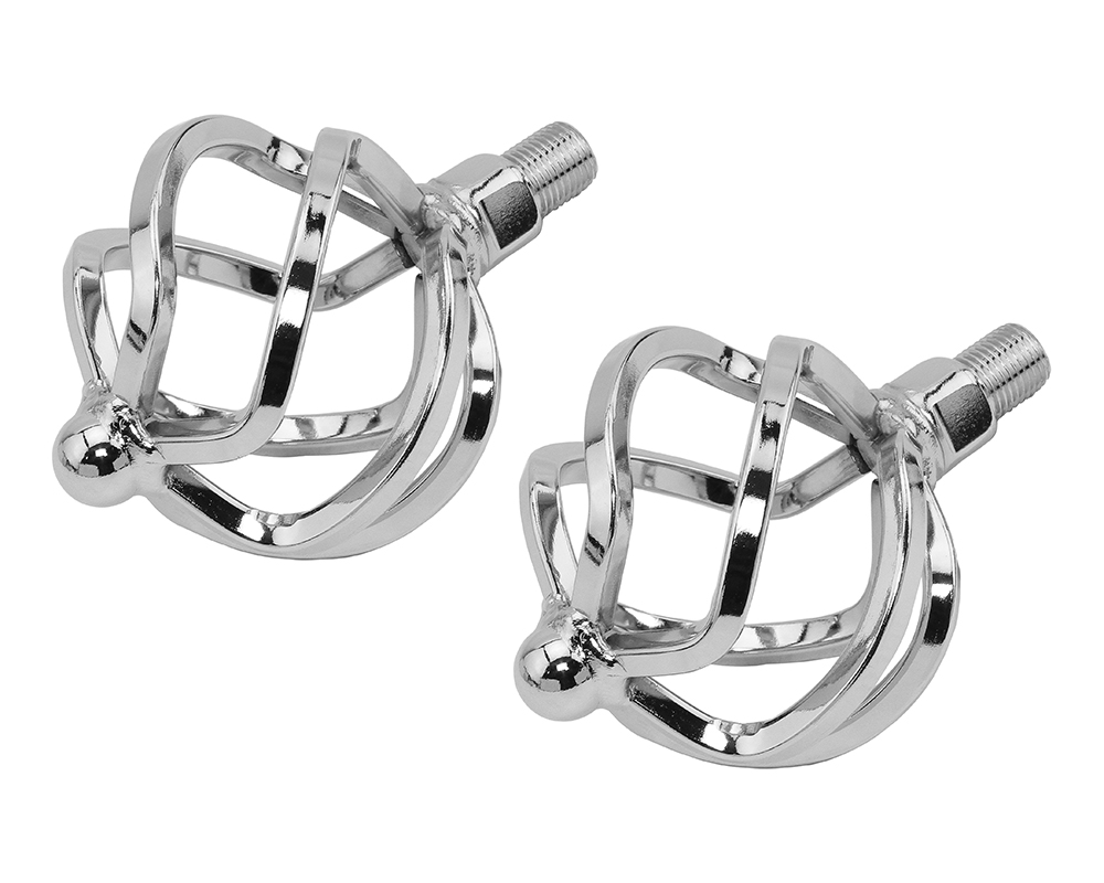 Lowrider Twisted Pedals W/Cage Ball B-592 1/2 Inch Chrome.