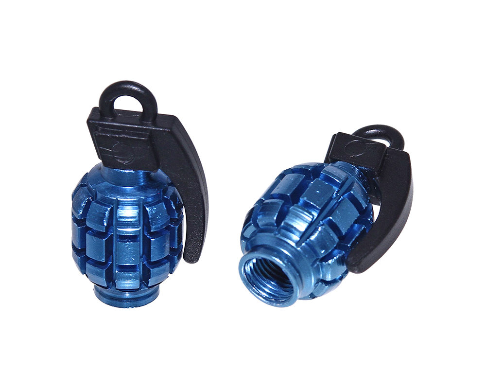 Grenade Valve Caps Blue Schrader Valve.