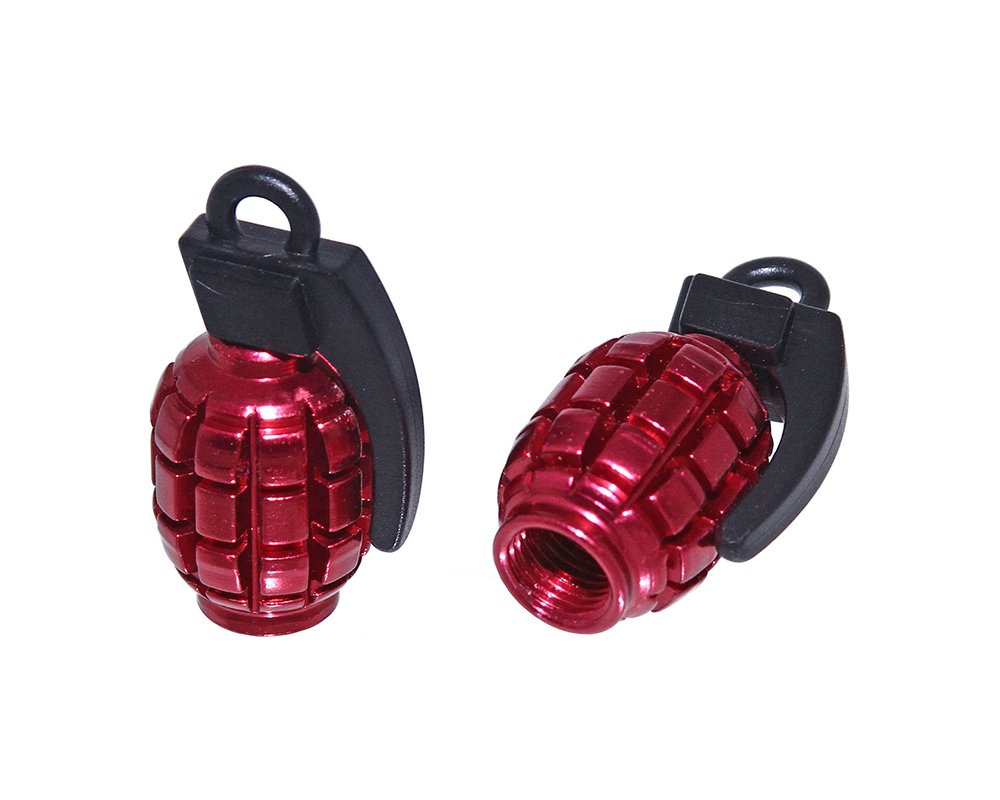 Grenade Valve Caps Red Schrader Valve.