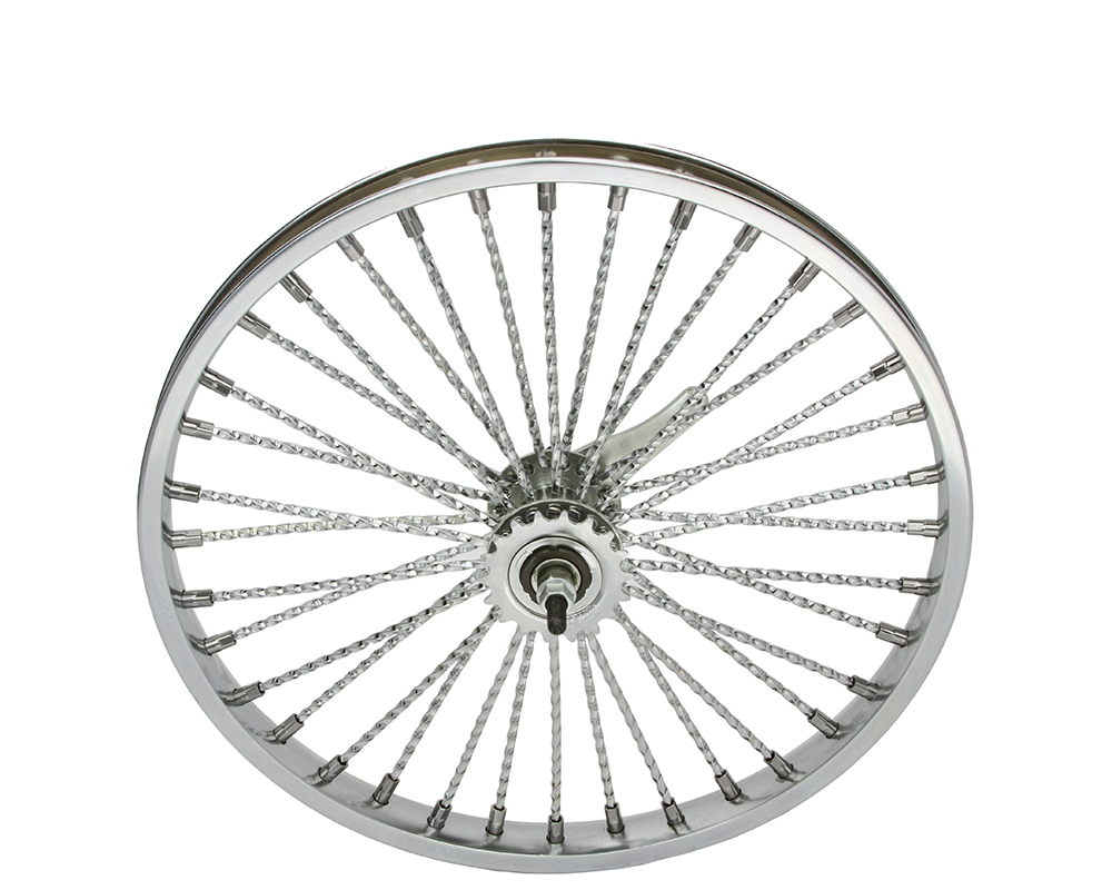 20 Inch x 32mm Steel Coaster Twisted Wheel 144 Spoke 14G Chrome 3/8 Axle Single Wall Chrome.