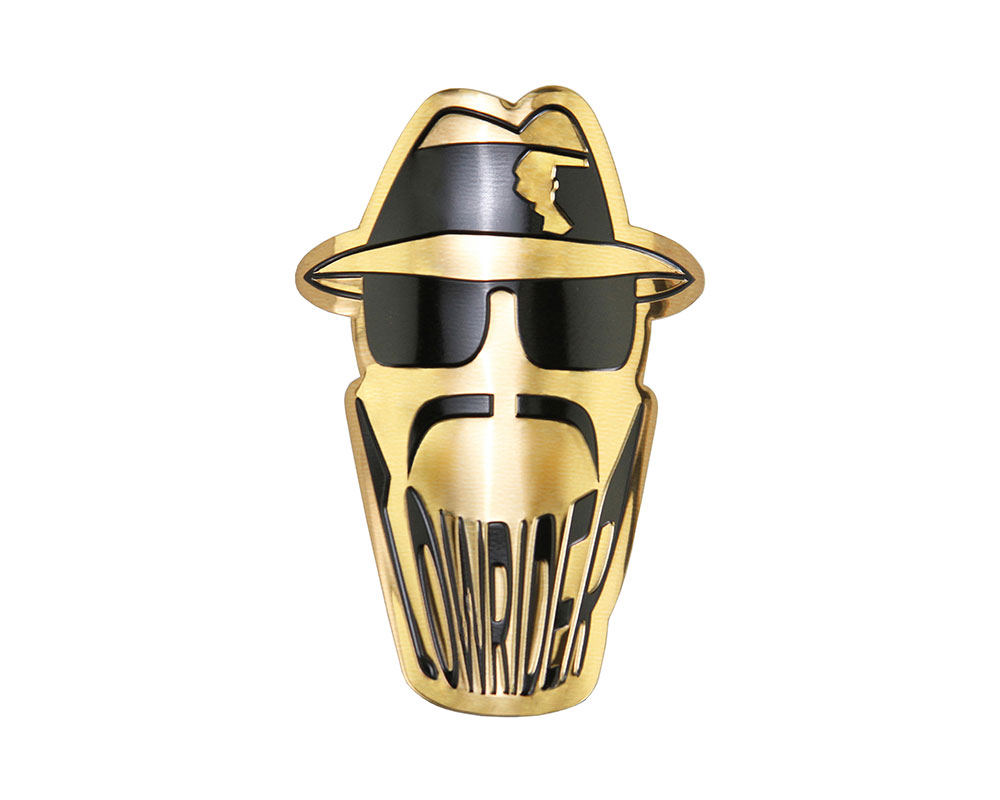 Lowrider Round Silhouette Head Name Plate Gold/Black.