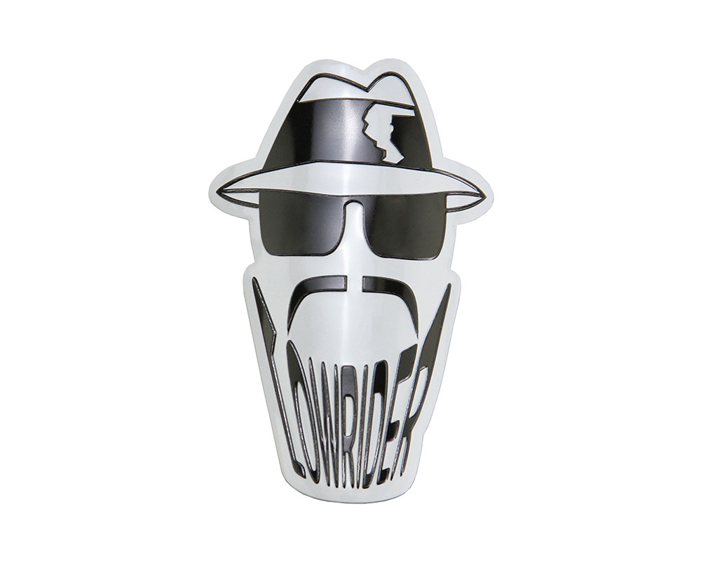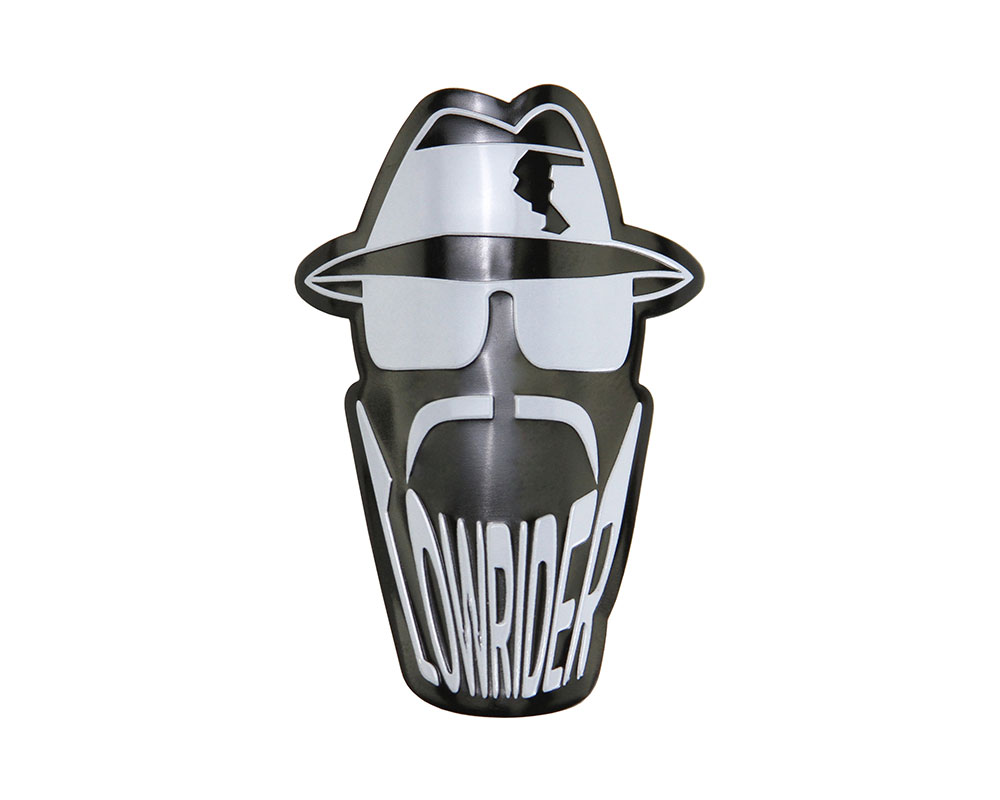 Lowrider Round Silhouette Head Name Plate Chrome/Black.